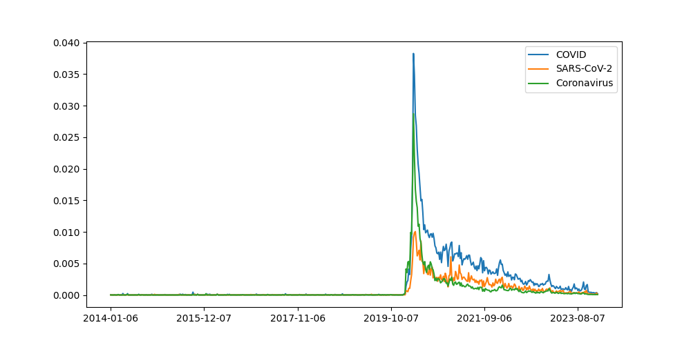 Signal of COVID and COVID-related terms, SARS-CoV-2 and Coronavirus.