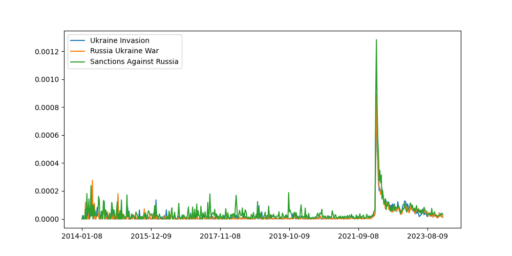 Signal of Ukraine Invasion and related terms, Russia Ukraine War and Russia Sanctions.
